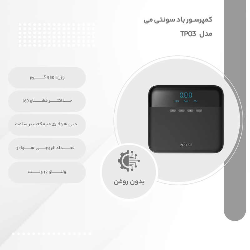 وزن950 گرمتعداد خروجی هوا1حداکثر فشار160دبی هوا25 مترمکعب بر ساعتفناوری کمپرسوربدون روغنولتاژ12 ولتویژگیهای کمپرسور هوادارای فشارسنجابعاد164x148x54 سانتیمتر