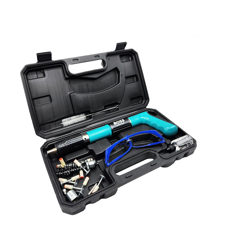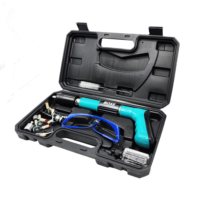 xامکان استفاده در بتن، پلاستیک، ورق های نازک فلزی، چوب و ... را دارد xقابلیت استفاده میخ تا 5 سانتیمتر را دارد xکارکرد ساده و قوی دارد xبدون نیاز به چاشنی انفجاری جداگانه می باشد xبسیار سبک، کم حجم وقابل حمل می باشد xمحصولی جدید و با تکنولوژی به روز جهت جایگزینی برای میخکوب های والتی، کامرکس و ... می باشد xبدون نیاز به چاشنی انفجاری می باشد xدارای کیف حمل، عینک، فرچه، فنر یدک می باشد تفنک میخکوب ابزاری است مشابه تفنگ بادی است. تفنگ میخکوب بتن برای اتصال پلیت ها و صفحات مختلف به بتن می باشد. البته مصارف دیگری از جمله اتصال انواع توری های مشبک و غیره به صفحه های بتنی و مصالح ساختمانی را نیز دارد. این تفنگ ها به وسیله چاشنی میخ موجود در خان تفنگ را با شدت به سمت هدف شلیک کرده و واشری که بر روی میخ قرار دارد صفحه را بر روی بتن نگه می دارد. با قرار دادن چاشنی مخصوص در داخل دستگاه و قرار دادن میخ در محل تعیینشده، میتوانید از این ابزار استفاده کنید. چاشنیهایی که برای این محصول در نظر گرفتهاند در دو نوع و برای کوبیدن میخ در فلز یا بتن هستند. نوع میخی که برای این دستگاه مورد استفاده قرار میگیرد، از گونههای واشردار است. از این دستگاه در شغلهای مختلف که با چوب و فلز سروکار دارند، استفاده میکنند.