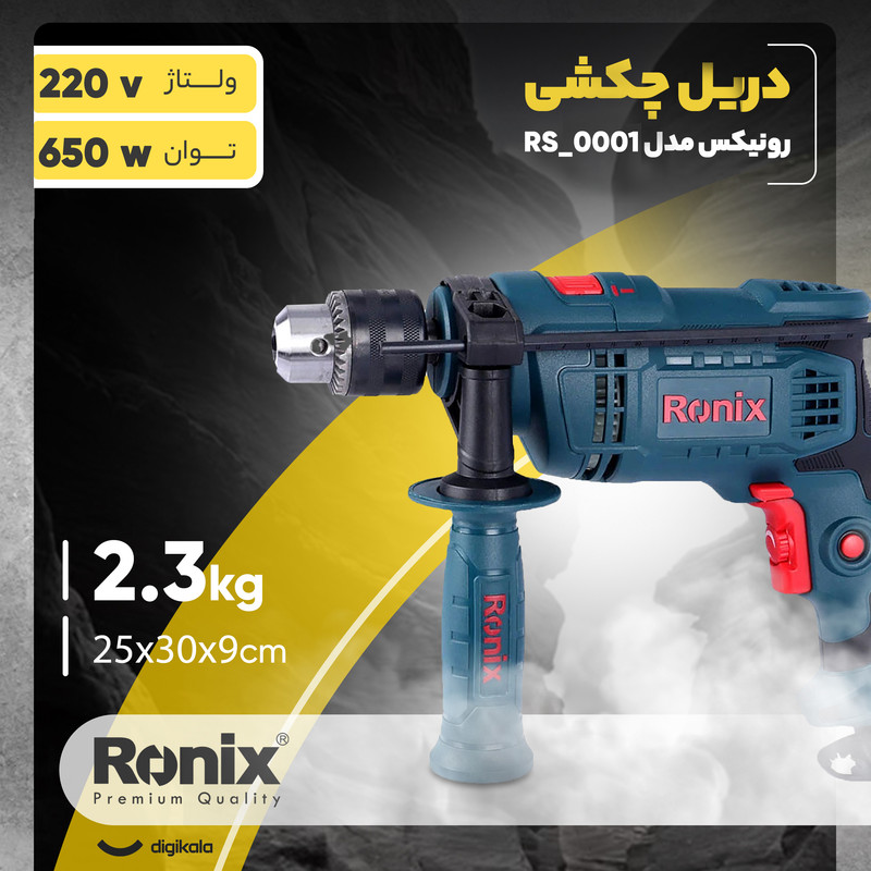 سه نظام این دریل از نوع آچاری تمام فلزی و به ظرفیت 13 میلی متر است که برای تعویض نیازمند آچار مخصوص می باشد. از دیگر ویژگی های کیت دریل چکشی 13 میلی متری رونیکس می توان به برخورداری از دیمر کنترل سرعت و کلید چپ گرد و راستگرد اشاره کرد که امکان باز و بسته کردن پیچ را فراهم می کند. در ضمن مدل RS-0001 رونیکس از وزن سبک و طراحی ارگونومیک برخوردار است و گزینه ای مناسب برای سوراخ کاری سطوح مختلف چوب، فلز و بتن می باشد.