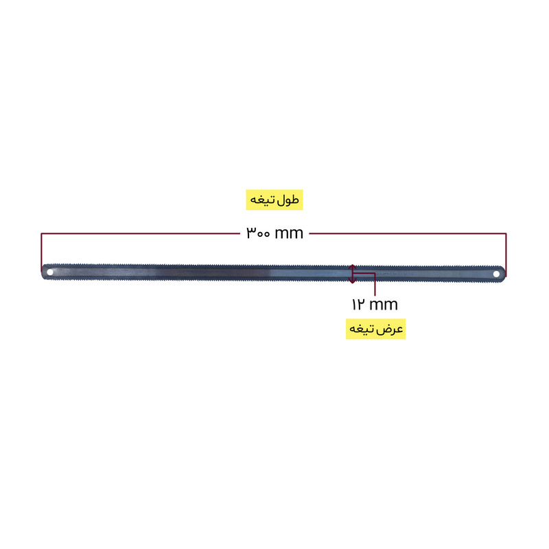 سایر توضیحات : - دو طرف تیغه آهن بر - قابلیت نصب آسان بر روی انواع کمان های اره - قابلیت برشکاری بر روی آهن، آلومینیوم، پلاستیک - دارای دندانه های تیز و مقاوم - دارای انعطاف پذیری فوق العاده و مقاوم در برابر شکستگی - ساخته شده از فولاد HSS BI-METAL