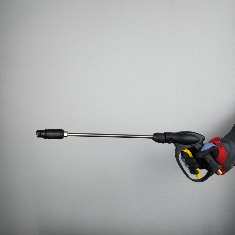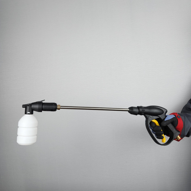 این کارواش به تفنگ قابل تنظیم مجهز شده که امکان تنظیم زاویه پاشش آب را برای انجام فعالیت های گوناگون فراهم می کند. همچنین این دستگاه به تفنگ آبپاش فشار قوی، کوپلینگ فشار قوی و مخزن مواد شوینده داخلی، شلنگ جهت کشش آب از سطل (برای سم یا سایر سیالات) مجهز است. طراحی ارگونومیک و وزن 11.5 کیلوگرمی از دیگر مشخصات این کارواش است.