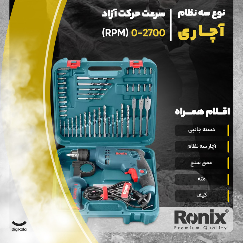 این دریل با توان موتور ۷۵۰ وات و سرعت گردش متغیر تا ۳۰۰۰ دور در دقیقه، امکان انجام عملیات پیچکاری و سوراخکاری را به صورت دقیق فراهم میکند. همچنین، سهنظام فلزی ۱۳ میلیمتری با قفل سریع، تعویض مته را آسانتر میکند و قابلیت چکشی آن، قدرت لازم برای کار با مصالح سخت را به ارمغان میآورد.