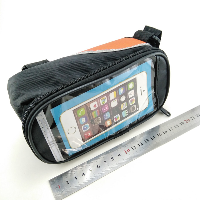 این کیف موبایل دوچرخه در روی خود دارای فضایی برای قرار دادن موبایل را دارد و صفحه رویی و نگهدارنده آن با پلاستیک شفاف مخصوص تاچ موبایل پوشیده شده است