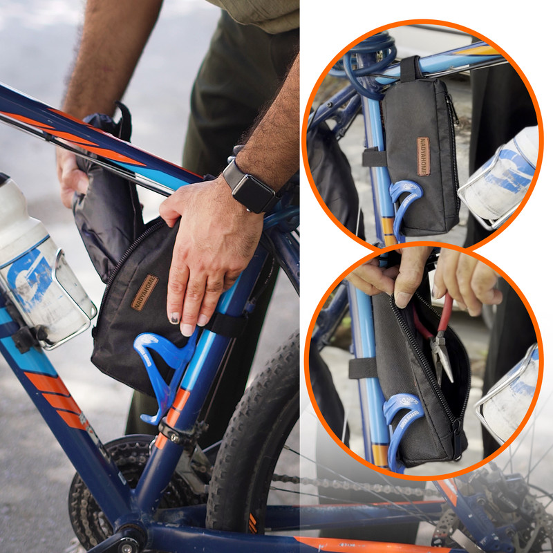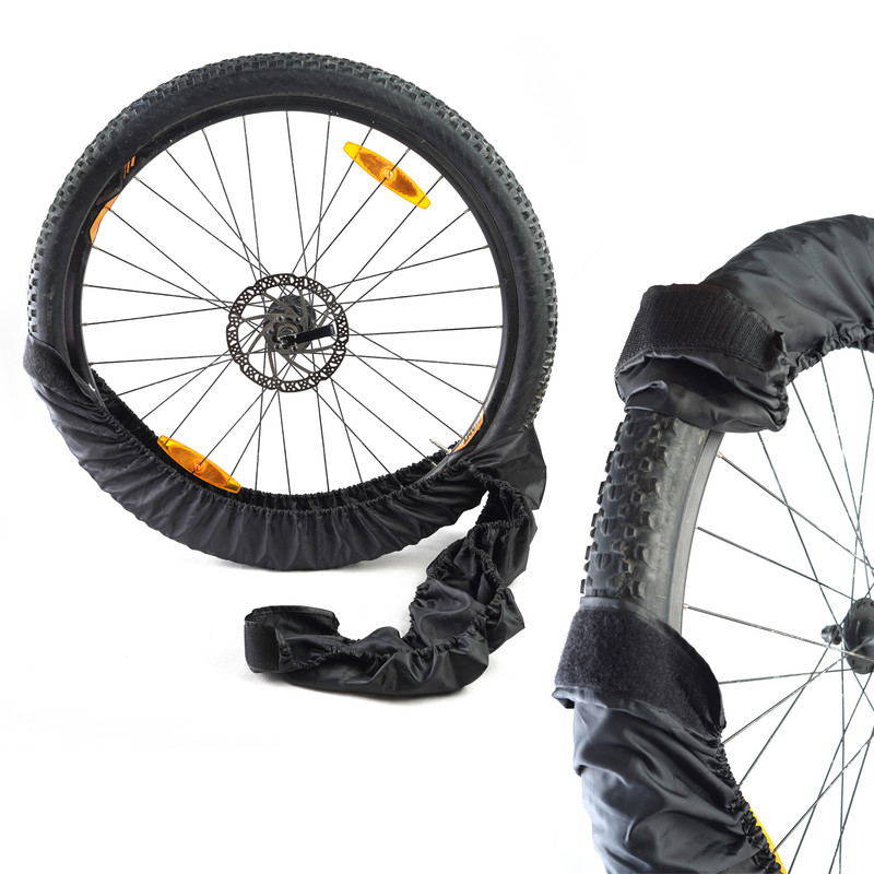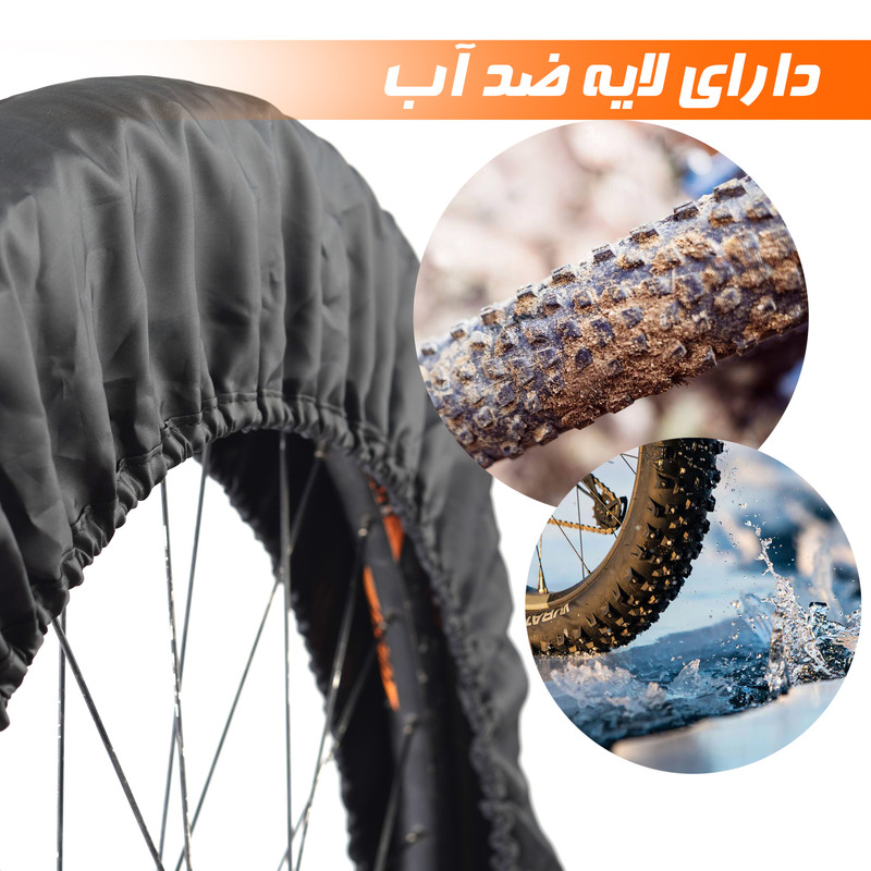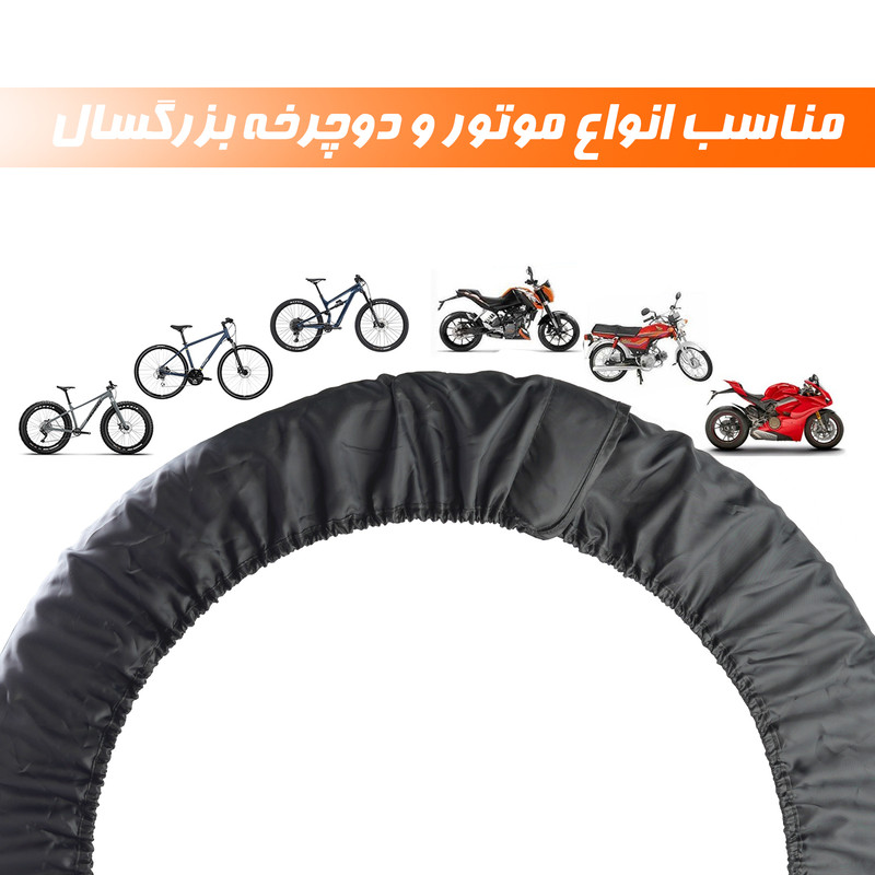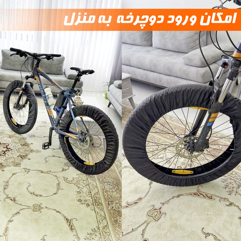 به همراه یک جفت کاور تایر، یک عدد کیف مخصوص برای نگهداری از کاور ها وجود دارد که شما به عنوان کیف دوچرخه نیز می توانید استفاده کنید، بندینک های مخصوص رو به میله های دوچرخه فیکس کنید و لوازم مورد نیازتان را داخل آن قرار دهید.