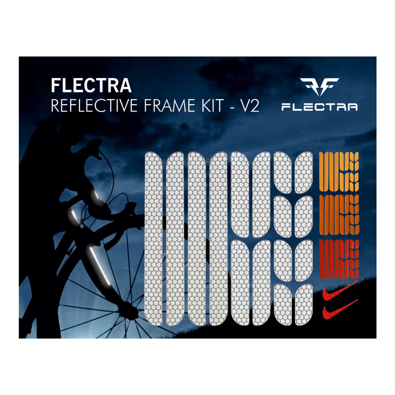 فلکترا محصولی است جهت افزایش ایمنی دوچرخه سواران درمحیط کم نور و شب میباشد این محصول قابل نصب بر روی تمامی دوچرخه ها میباشد .محصول فوق شامل 18 عدد برچسب بدنه فلکترا 360 المان شامل 10 عدد برچسب کلاه -2 عدد برچسب رکاب -18 عدد برچسب طوقه-با طول عمر 8 ساله مفاوم در برابر اب و گرد خاک میباشد.لطفا قبل از نصب شبرنگ ها قسمت مورد نظز را تمیز سپس با الکل تمیز و نصب نمایید.جهت تست محصول میتوانید با فلش روشن از محصول در محیط کم نور عکس یا فیلم بگیرید