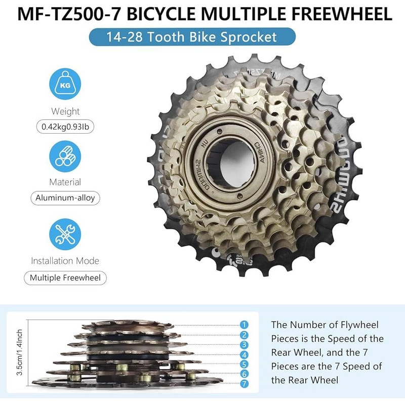 مناسب برای دوچرخه های 7 سرعته / ساخت کشور : چین / برند : شیمانو | SHIMANO / مدل : MF-TZ500-7 / تعداد دندانه ها: صفحه بزرگ 34 دندانه / صفحه کوچک 14 دندانه / کد : 1102027