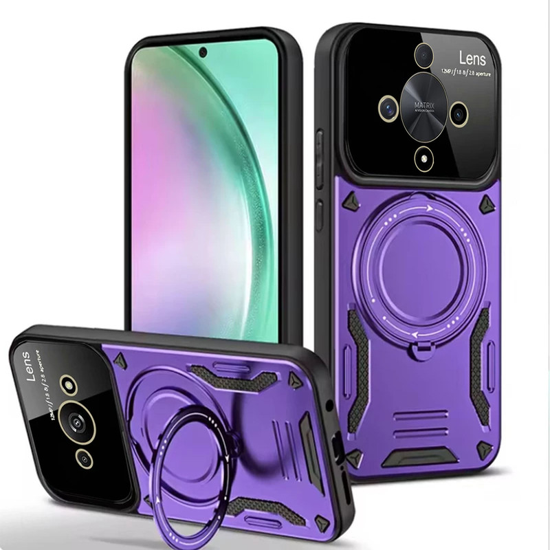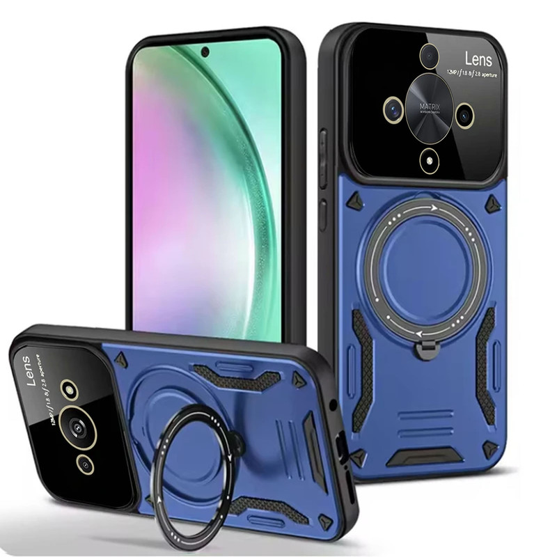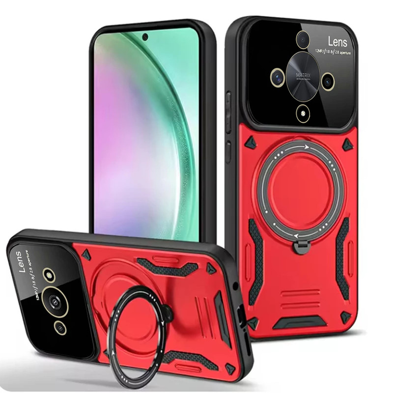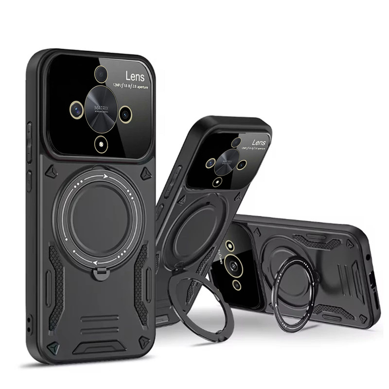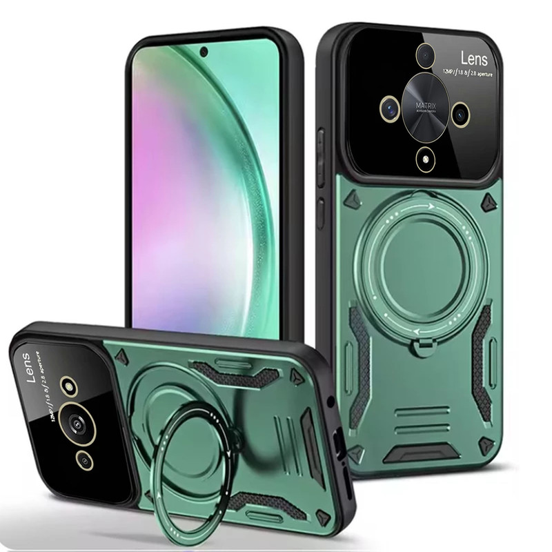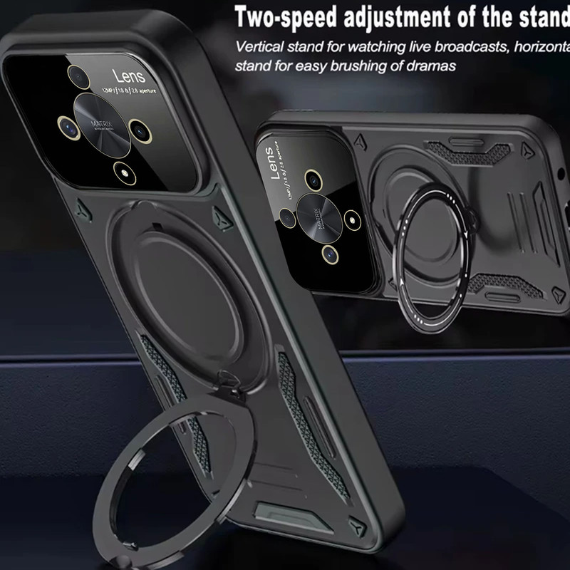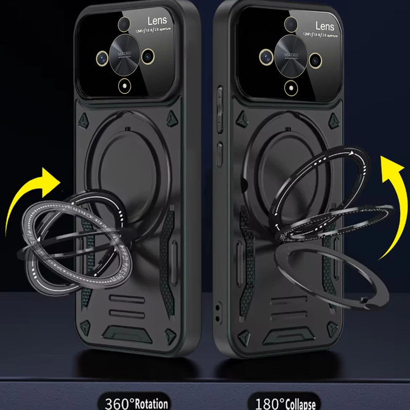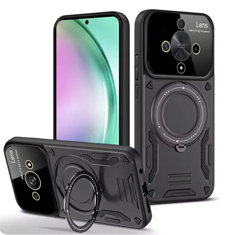 قاب گوشی Hybrid Armor Strap با طراحی لوکس و در عین حال مقاوم با متریال درجه یک با جنس TPU و PC دارای حداکثر مقاومت در برابر خراش و ضربه با ویژگی های منحصر به فرد برای محافظت از لنز دوربین و طراحی پایه حلقه مغناطیسی ساخته شده است. محافظ کامل لنز قاب گوشی از پلکسی با سختی بالا ساخته شده و لنز دوربین مجهز به شیشه سکوریت است که به طور موثر از تعریق دست، اثر انگشت، لکه و غیره جلوگیری کرده و کاملا از لنز دوربین با حفظ وضوح تصویر تلفن همراه شما 100٪ محافظت می کند. پایه حلقه مغناطیسی 360 درجه، دو حالت ایستاده را برای مشاهده افقی و عمودی ارائه می دهد، که می توان از آن به عنوان نگهدارنده گوشی استفاده کرد و هنگام تماشای ویدئو دست خود را آزاد کرد. پچ فلزی به راحتی به پایه ماشین مغناطیسی متصل می شود که در طول رانندگی برای مسیر یابی و ... استفاده از تلفن همراه را بسیار راحت می کند.