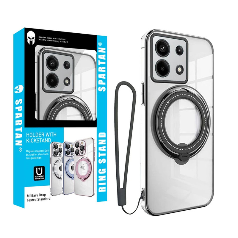 در سری Ring Stand برند Spartan با بهره گیری از تکنولوژی ساخت Flex Impact Cushion به بهترین نحو جلوی صدمات وارده به گوشی در هنگام سقوط گرفته شده است. چهار Airbag جایگذاری شده در گوشه ها، ضربه های وارده در هنگام سقوط را جذب کرده و به گوشی هیچ گونه صدمه ای وارد نخواهد شد. البته برای کسب Military Grade Protection طراحان کاور از لبه های برجسته دور صفحه نمایش و لنزهای دوربین و همچنین پوشش لنزها با محافظ های کاملا شفاف بهره برده اند، که به خوبی مانع میشوند تا صفحه نمایش و لنزها با سطوح تماس پیدا کنند و خط و خشی روی این بخشهای حساس و ارزشمند گوشی ایجاد شود. برای ساخت یک کاور ایده آل تنها حفاظت کافی نیست. همه ما بخشی از روز را به مشاهده فیلم گذرانده و یا در هنگام مطالعه و انجام کارهای روزمره گوشی را روی سطوح قرار میدهیم. با استفاده از Ring Stand فلزی و مستحکم این کاور که امکان چرخش 360 درجه را دارار میباشد، براحتی میتوان گوشی را در زاویه های مختلف و بصورت افقی یا عمودی روی سطوح مختلف قرار داد. در زندگی پیچیده امروزی استفاده از نرم افزارها در هنگام رانندگی نیز ادامه پیدا میکند. با کمک استند MagSafe این کاور براحتی می توان گوشی را روی نگهدارنده های مغناطیسی و شارژهای وایرلس قرارداد و از نیفتادن گوشی اطمینان حاصل کرد. کاورهای Ring Stand با استفاده از بهترین متریال و دستگاههای موجود، قالب ریزی شده اند، تا بهترین حس در دست، عمر و استحکام عالی و ظرافت در ساخت را همزمان ممکن سازند.