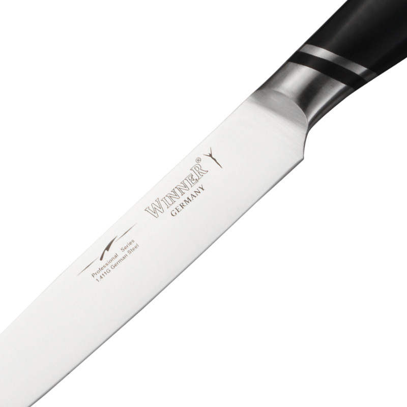 - کارد با تیغه وانادیوم لیزری - ساخت شرکت WINNER آلمان - دسته و بدنه یک تکه - کارد روزمره عالی و بسیار تیز - مناسب گوشت و سبزی