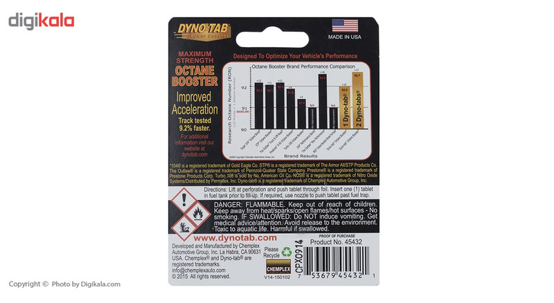 محصولی که مشاهده میفرمایید تمیز کنندهی سیستم سوخت بوده که شامل 2 قرص است که برای بهینه سازی مصرف سوخت مورد استفاده قرار میگیرد.این محصول در واقع یک افزایش دهندهی عدد اکتان بنزین بوده که موجب بالا رفتن شتاب خودرو میشود. استفاده از این محصول نه تنها باعث بهبود عملکرد خودروی شما میشود بلکه در کاهش دود خروجی از اگزوز نیز کمک میکند. این محصول در یک بستهبندی 10 گرمی عرضه میشود. از دیگر ویژگیهای این محصول میتوان به بهبود فرایند احتراق موتور خودرو اشاره کرد. این ویژگی در عین حال که باعث مصرف سوخت کمتر میشود، موجب بالا رفتن راندمان عملکرد خودرو نیز میشود. لازم به ذکر بوده هر قرص مناسب برای 60 لیتر بنزین (16 گالن) است که باید درون باک انداخته شود. این مکمل سوخت با قدرت بیشتری نسبت به محصولات مشابه میتواند باعث کاهش رسوبات محفظهی احتراق شود.