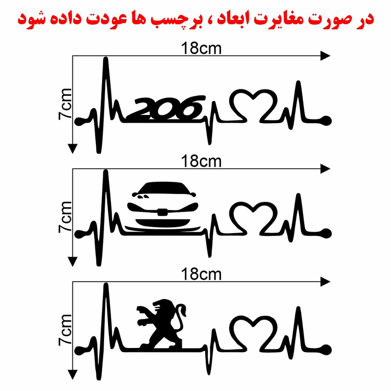 رنگ مشکی ابعاد 7 در 18 مقاوم در برابر آب و شستشو همراه با سلفون جهت نصب آسان نصب از خارج خودرو