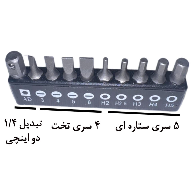 محتویات مجموعه: آچار آلن , آچار بکس , آچار فرانسه , پیچ گوشتی , دسته جغجغهای , سری بکس , سری پیچگوشتی