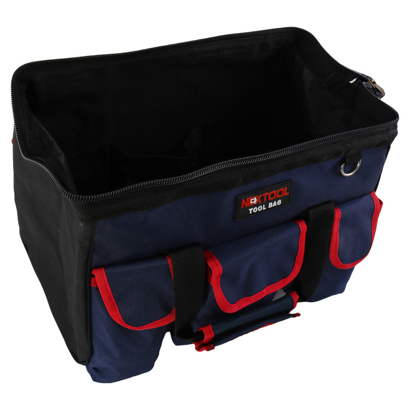کیف ابزار نکستول گروپ مدل NT40-CM یکی از محصولات پرطرفدار از مجموعه ابزار آلات نکستول است. سایز این کیف ابزار 40 سانت بوده. با داشتن این کیف ابزار فضای کمتری جهت نگهداری ابزارآلات لازم است و نیز با سازمان دهی ابزار توسط این کیف، دسترسی سریع به ابزار مورد نیاز میسر میشود. این کیف ابزار بسیار جادار و همچنین دارای 12 جیب داخلی و خارجی است. این کیف از پارچه دولایه از جنس پلی استر ساخته شده تا مستحکمتر و نیز مقاومتر در مقابل ساییدهگی باشد. همچنین پارچه این کیف حالت ضد آب دارد تا آب از پارچه آن عبور ننماید و ابزار آلات داخل کیف از رطوبت محفوظ بمانند. نقاط تحت فشار این کیف ابزار تقویت شده تا از پاره شدن کیف ابزار (بخصوص هنگام زیاد بودن وزن ابزار داخل کیف ابزار و یا وجور ابزار تیز داخل کیف ابزار) جلوگیری شود. همچنین این کیف ابزار قابلیت تحمل وزن تا 15 کیلوگرم را دارا بوده. همچنین دوخت چند لایه این کیف ابزار به استحکام بیشتر این کیف ابزار انجامیده است. این کیف ابزار دارای دسته مقاوم و همچنین بند رو دوشی مستحکم قابل تنظیم هست.