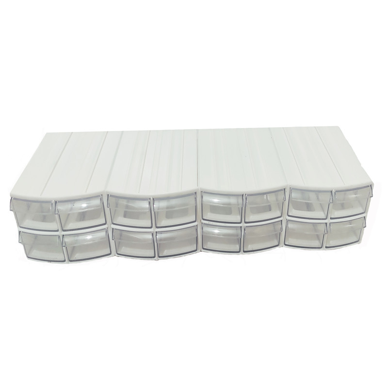 جعبه ابزار مدل S20 جعبه ابزاری است که در خانه،محل کار،انبار و محیط اداری بسیار مناسب است چراکه در عین اشغال فضای کم بسیار پرکاربرد است.ویژگی ای که این جعبه ابزار را از بقیه جعبه ابزار ها متمایز کرده چند حالته بودن آن است به این منظور که شما میتوانید طبقات آن را از هم جدا کرده و بصورت جداگانه از آن استفاده کنید و یا بصورت کشویی طبقات آن را به انتخاب خودتان در کنار هم قرار دهید و حالت های مختلف در عکس آلبوم موجود است.تا بینهایت از این کشو ها به صورت طبقاتی بر روی هم یا یا کنار هم میتوانند قرار گیرند .قرار گیری طبقات این جعبه ابزار کنار هم بسیار روان و بدون هیچ گیری انجام می شود.طراحی زیبا،جنس مرغوب،قیمت مناسب،از دیگر ویژگی های این محصول است.در قسمت بالایی هرقفسه محلی برای لیبل و شماره گذاری تعبیه شده است. هر خانه از این جعبه به 4 خانه دیگر تقسیم شده است که در مجموع میشود 16 قسمت مجزا که به صورت کشویی بیرون می آید.