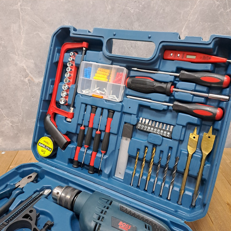 آچار فرانسه , انبر دم باریک , انبردست , پیچ گوشتی , تیغ کاتر , چسب , چکش , رولپلاک , سری بکس , سری پیچگوشتی , فازمتر , کاتر , کمکی بکس , کیف ابزار , متر , مته , دریل