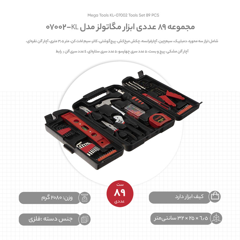 محتویات مجموعه: آچار آلن , آچار فرانسه , انبر سیمچین , پیچ گوشتی