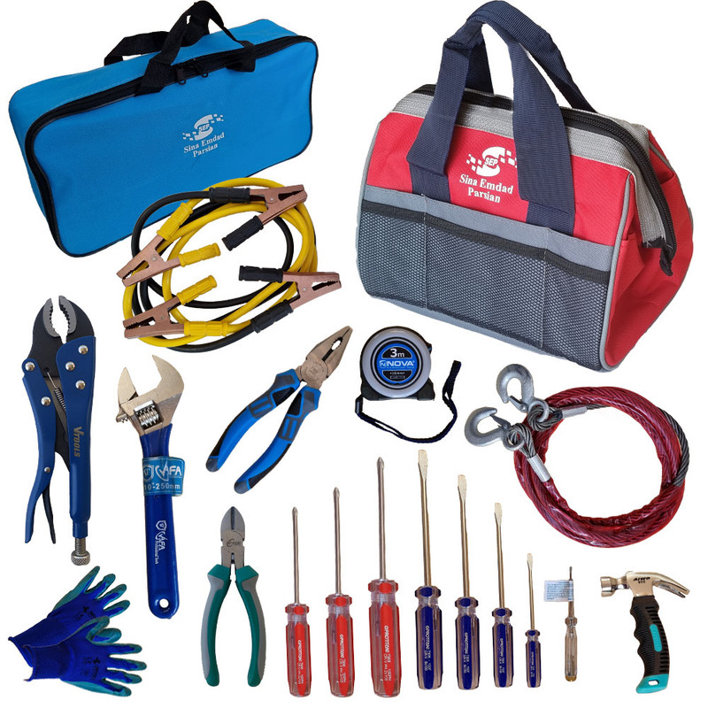 محتویات مجموعه: آچار فرانسه , انبر سیمچین , انبر قفلی , انبردست , بست , چکش , سری پیچگوشتی , فازمتر , کیف ابزار , متر