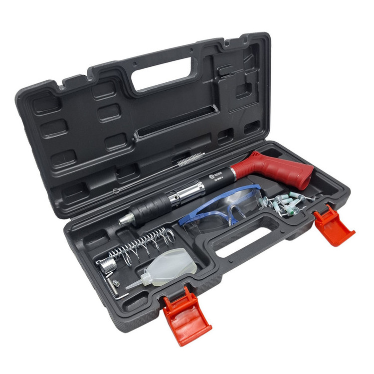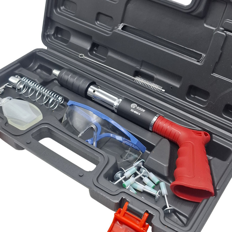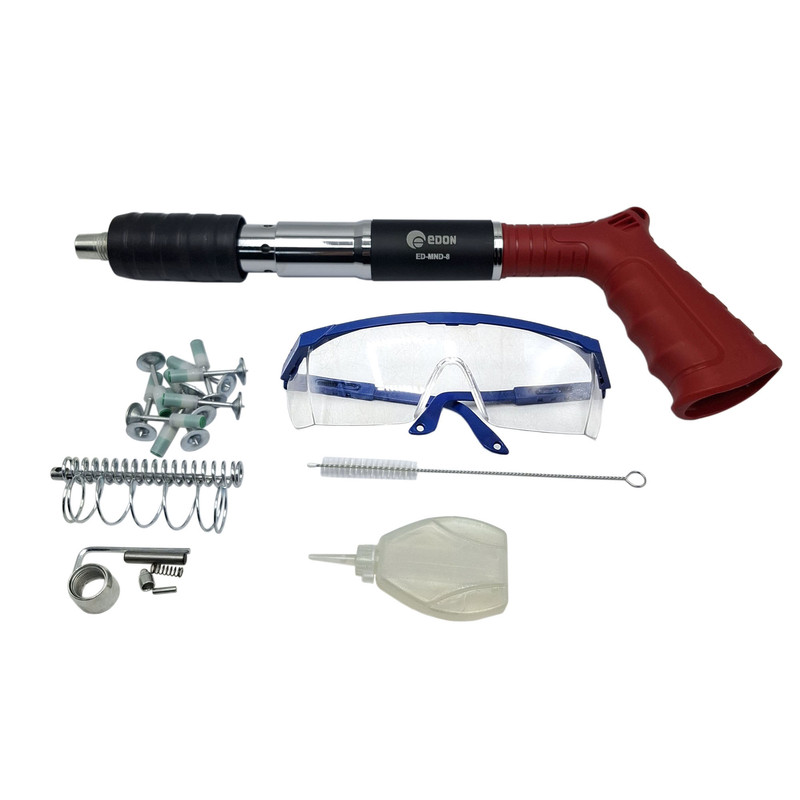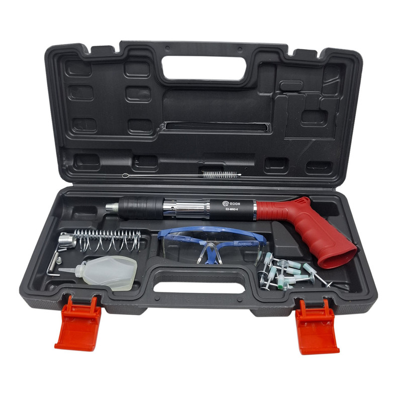 دفترچه .عینک .کیف حمل . 10 عدد میخ چاشنی .روغن . فرچه . ابزار یدک داخل میخکوب