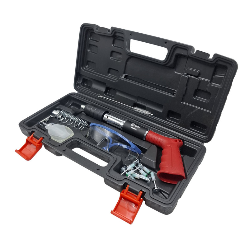 دفترچه .عینک .کیف حمل . 10 عدد میخ چاشنی .روغن . فرچه . ابزار یدک داخل میخکوب
