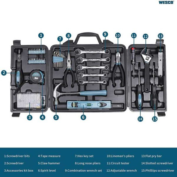آچار آلن , آچار فرانسه , آچار یکسر تخت یکسر رینگی , انبر دم باریک , انبر سیمچین , پونز , پیچ , پیچ گوشتی , تراز , چکش , رولپلاک , سری پیچگوشتی , فازمتر , کیف ابزار