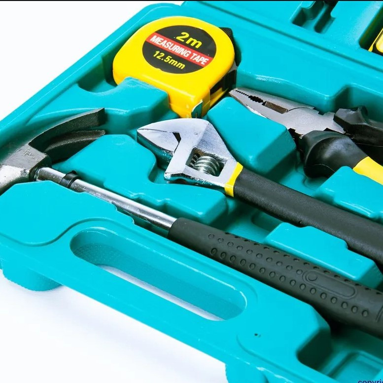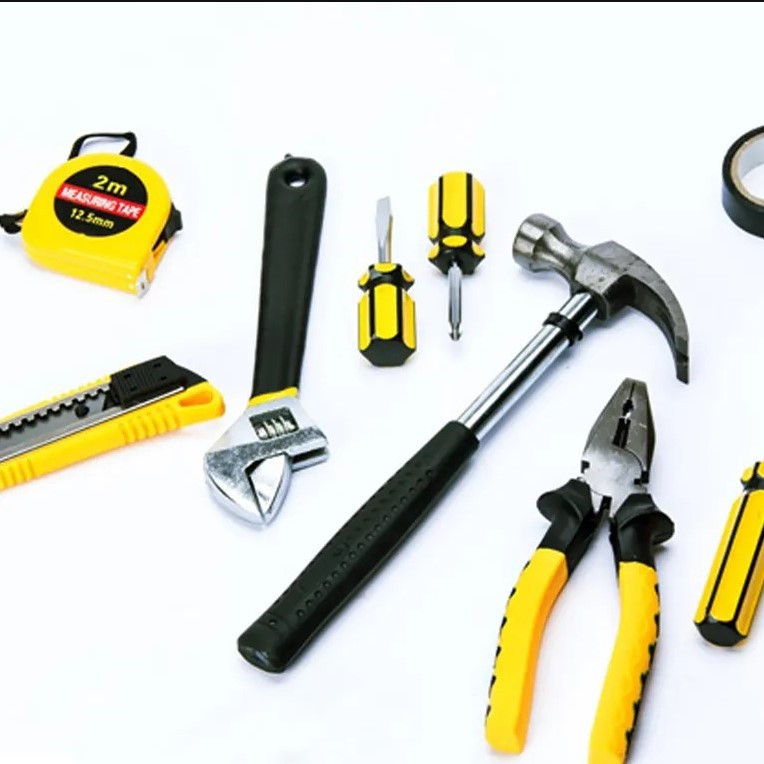 پیچ گوشتی , انبر دم باریک , انبردست , فازمتر , متر , چسب , چکش , آچار فرانسه , کاتر , کیف ابزار