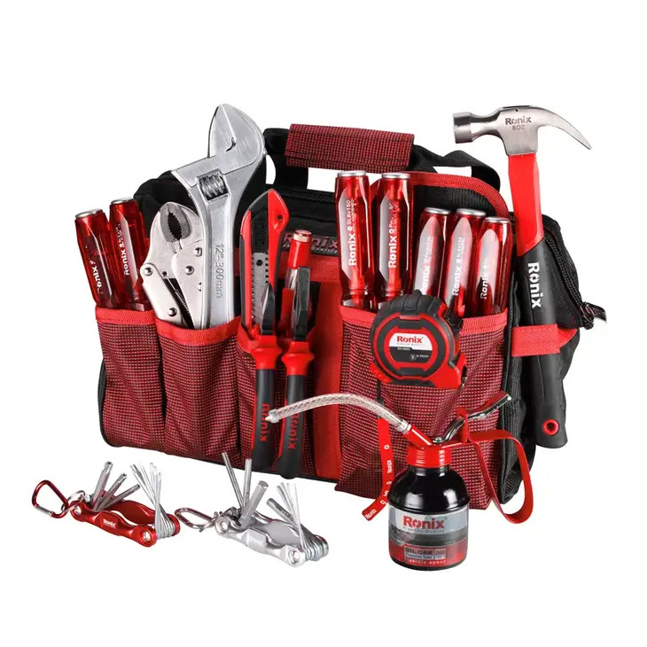 محتویات مجموعه: آچار فرانسه , پیچ گوشتی , انبر قفلی , انبردست , انبر سیمچین , فازمتر , کاتر , متر , چکش , آچار آلن