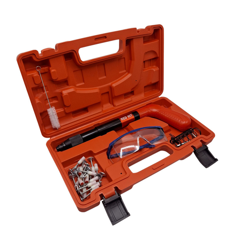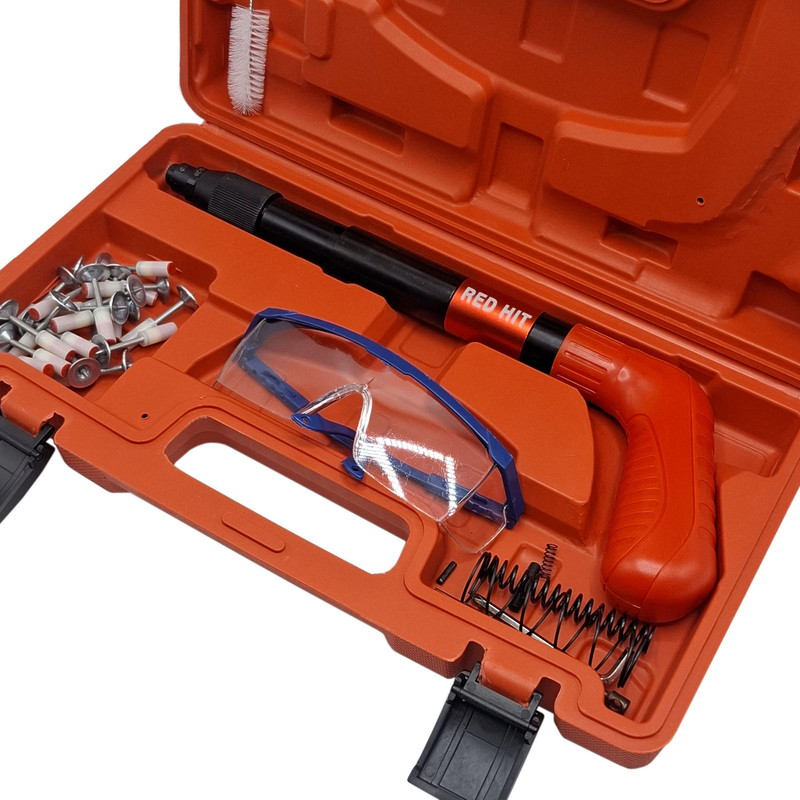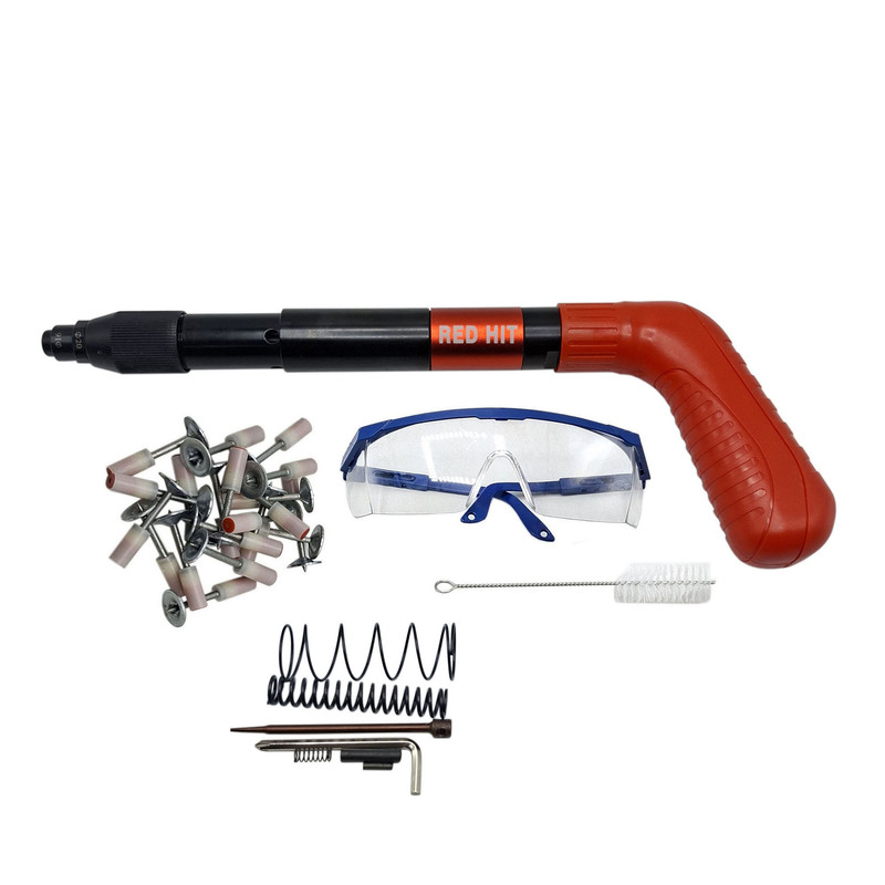 دفترچه .عینک .کیف حمل . 20 عدد میخ چاشنی . فرچه . ابزار یدک داخل میخکوب