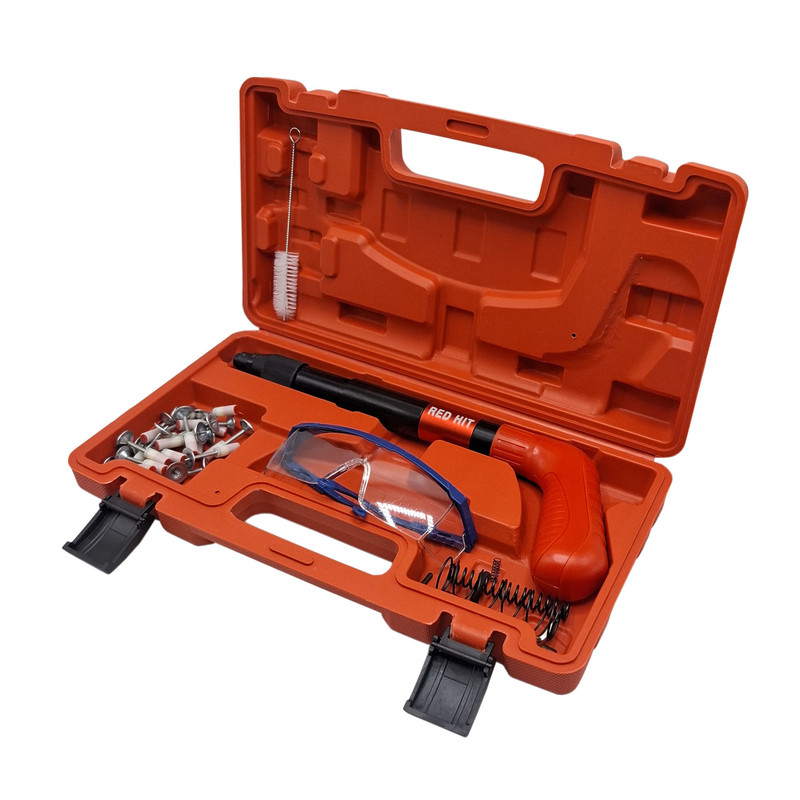 دفترچه .عینک .کیف حمل . 20 عدد میخ چاشنی . فرچه . ابزار یدک داخل میخکوب