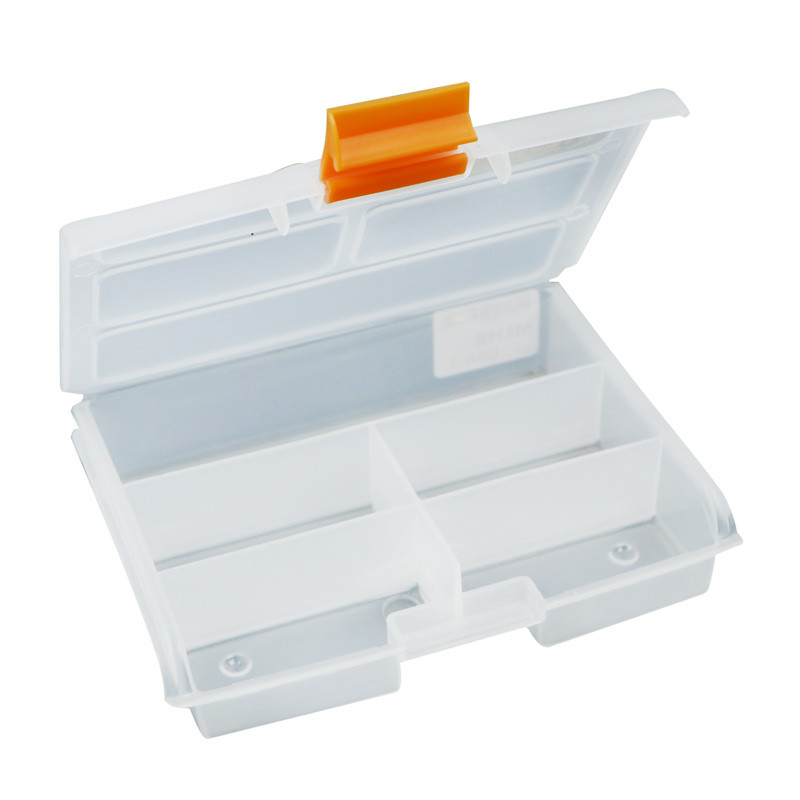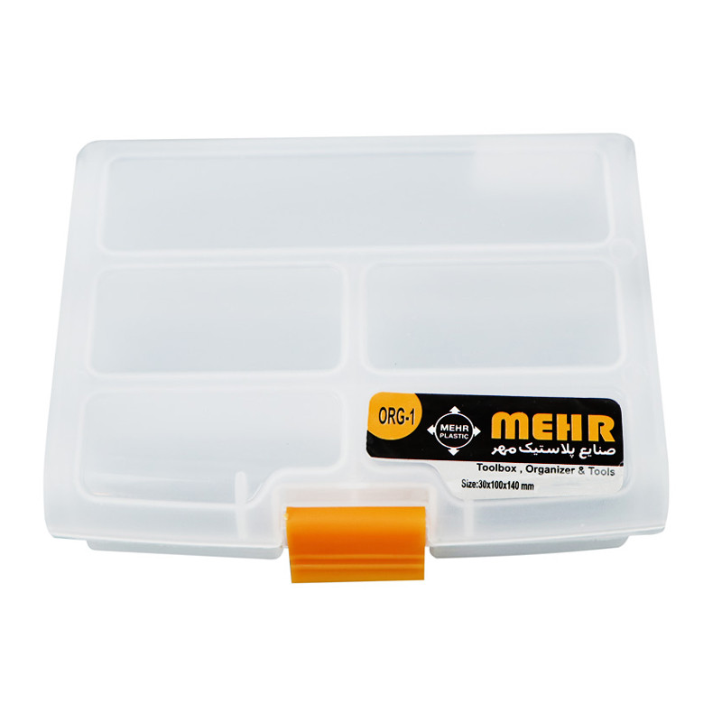 جنس بدنه پلاستیک خشک، قفل پلاستیکی و درپوش شفاف، دارای ۵ محفظه مناسب برای تفکیک اقلام و ابزار آلات کوچک نظیر پیچ و مهره و … از یکدیگر