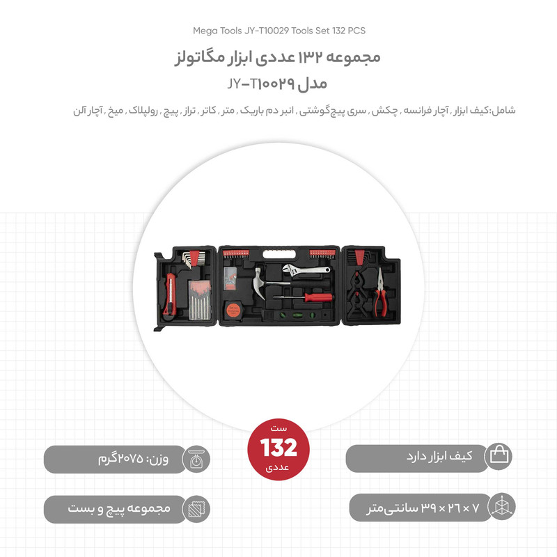 محتویات مجموعه: کیف ابزار , آچار فرانسه , چکش , سری پیچگوشتی , انبر دم باریک , متر , کاتر , تراز , پیچ , رولپلاک , میخ , آچار آلن
