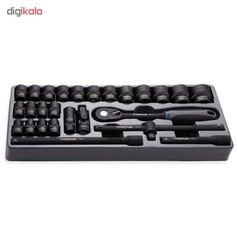 - دارای دو عدد اضافه کننده 250 و 125 میلیمتری - یک عدد آچار جق جقه با درایو 1/2 اینچ - یک دسته بکس T شکل 300 میلیمتری با درایو 1/2 اینچ - یک عدد لقلقه - به همراه یک عدد سوکت 16 میلیمتری عمیق