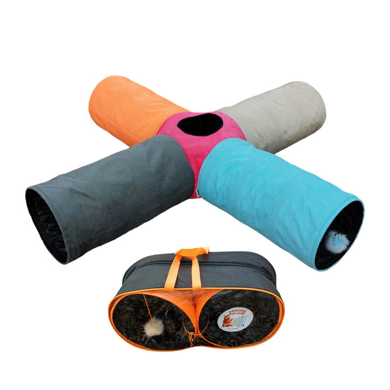 اسباب بازی گربه آدریاناپت مدل تونل چهار کانال طرح بلند رنگارنگ