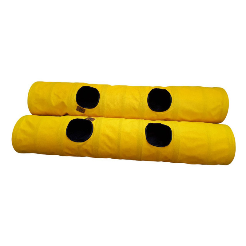 این پک شامل دو عدد تونل گربه دو شاخه می باشد که می توانید به صورت مدل هایی که در عکس مشاهده می کنید استفاده کنید. ابعاد هر کدام از تونل های دو شاخه 150*30 با ارتفاع 30 سانتی متر و وزن هر کدام 600گرم است همچنین قطر دهانه تونل 25سانتی متر می باشد. جنس پارچه مخمل نرم و لطیف می باشد.