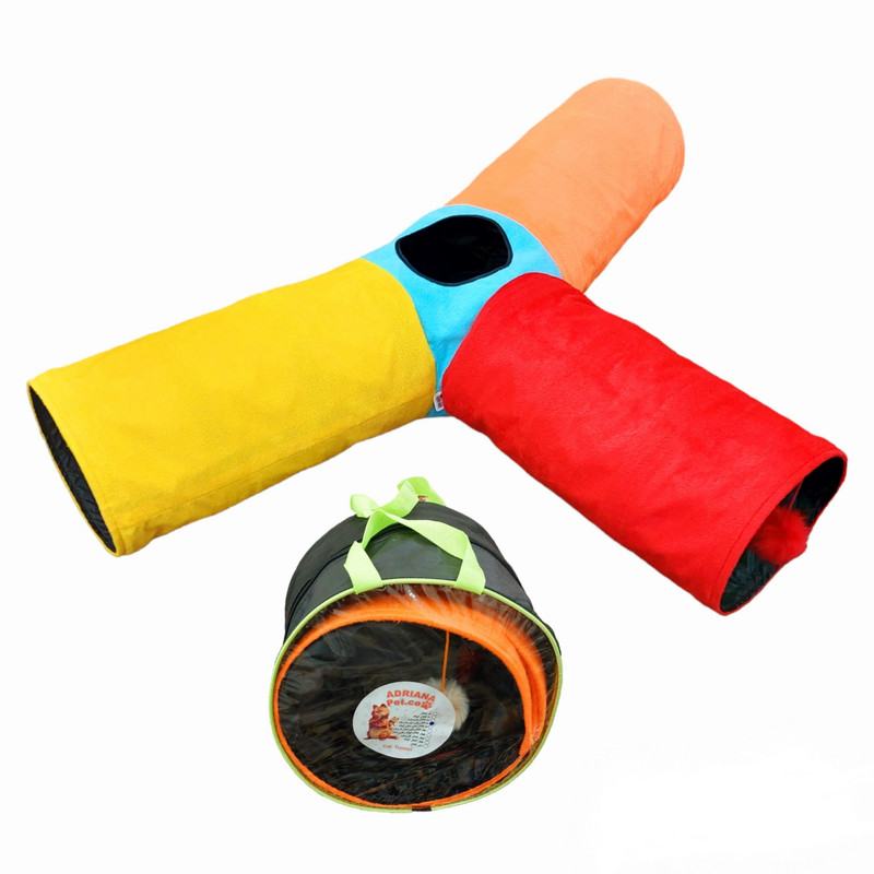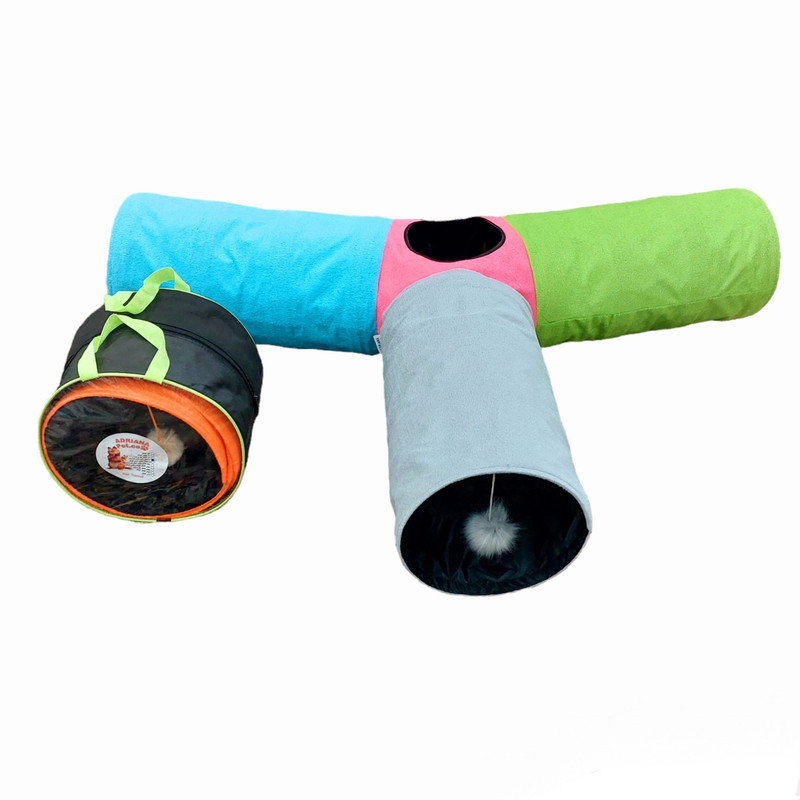 اسباب بازی گربه آدریاناپت مدل تونل سه کانال بلند طرح رنگارنگ