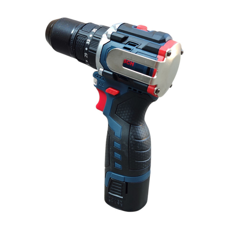 همچنین باتری خشابی آن به گونه ای طراحی شده که در داخل دریل قرار گرفته و از آن بیرون نمی زند. این ویژگی به شما این امکان را می دهد که از دریل شارژی بتوانید در جاهای تنگ مانند داخل کابینت و مبل استفاده کنید. باتری این دستگاه 4 سلولی و از نوع لیتیوم یونی بوده، 24 ولت توان داشته و ظرفیت آن 5/1 آمپر می باشد که توسط یک شارژر سوزنی فست شارژ در کمترین زمان ممکن شارژ می شود. برخلاف دیگر مدل های دریل شارژی که میزان شارژ باتری را بر روی باتری مشاهده می کردید در این مدل با استفاده از سه چراغی که در پهلوی دستگاه قرار دارد می توانید میزان شارژ موجود در باتری را مشاهده کنید.