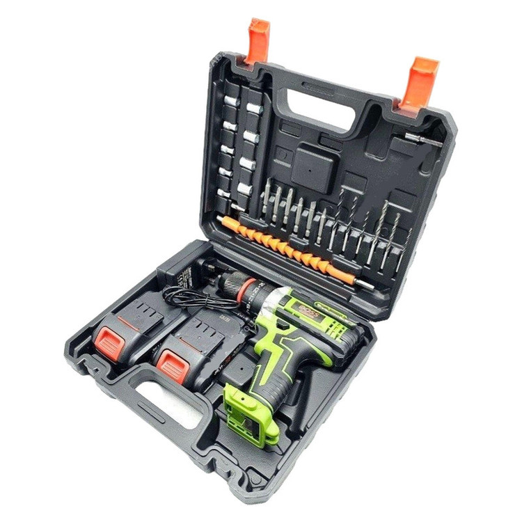 ⭐ مجموعه دریل شارژی چکشی 36 ولت باس✔ چکشی✔ سه نظام فلزی✔ دو عدد باتری 36 ولت لیتیوم تاریخ جدید✔ گیربکس دو دور قدرتمند✔ دور 0 تا 450 و 0 تا 1500 دور بر دقیقه✔ قابلیت کنترل سرعت فشاری✔ چپگرد و راستگرد✔ سیم پیچ تمام مس✔ به همراه لوازم؛ مته آهن( سایز 4، 5 و 6 میلیمتر)، مته چوب( سایز 4، 5 و 6 میلیمتر)، رابط فنری تاشونده، سه عدد نوک پیچ گوشتی دوسو، سه عدد چهارسو، 9 عدد بکس، و تبدیل بکس خور سر دریلی سایز 1/4✔ کیف BMC