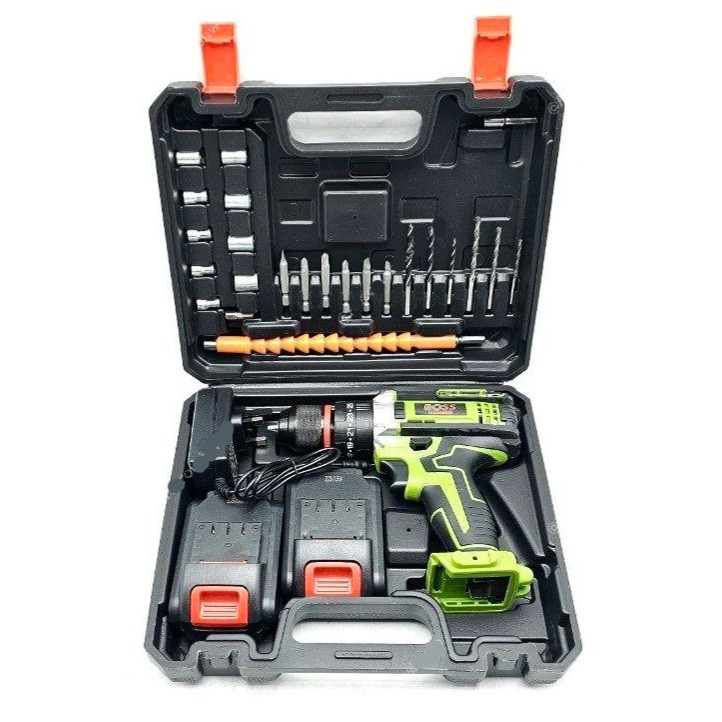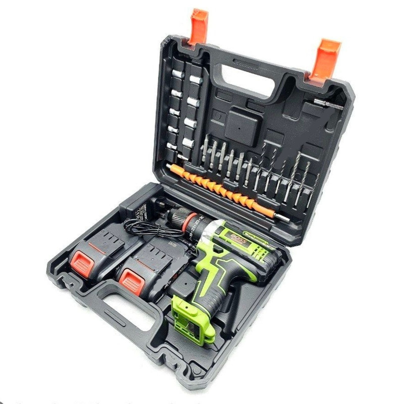 ⭐ مجموعه دریل شارژی چکشی 36 ولت باس✔ چکشی✔ سه نظام فلزی✔ دو عدد باتری 36 ولت لیتیوم تاریخ جدید✔ گیربکس دو دور قدرتمند✔ دور 0 تا 450 و 0 تا 1500 دور بر دقیقه✔ قابلیت کنترل سرعت فشاری✔ چپگرد و راستگرد✔ سیم پیچ تمام مس✔ به همراه لوازم؛ مته آهن( سایز 4، 5 و 6 میلیمتر)، مته چوب( سایز 4، 5 و 6 میلیمتر)، رابط فنری تاشونده، سه عدد نوک پیچ گوشتی دوسو، سه عدد چهارسو، 9 عدد بکس، و تبدیل بکس خور سر دریلی سایز 1/4✔ کیف BMC