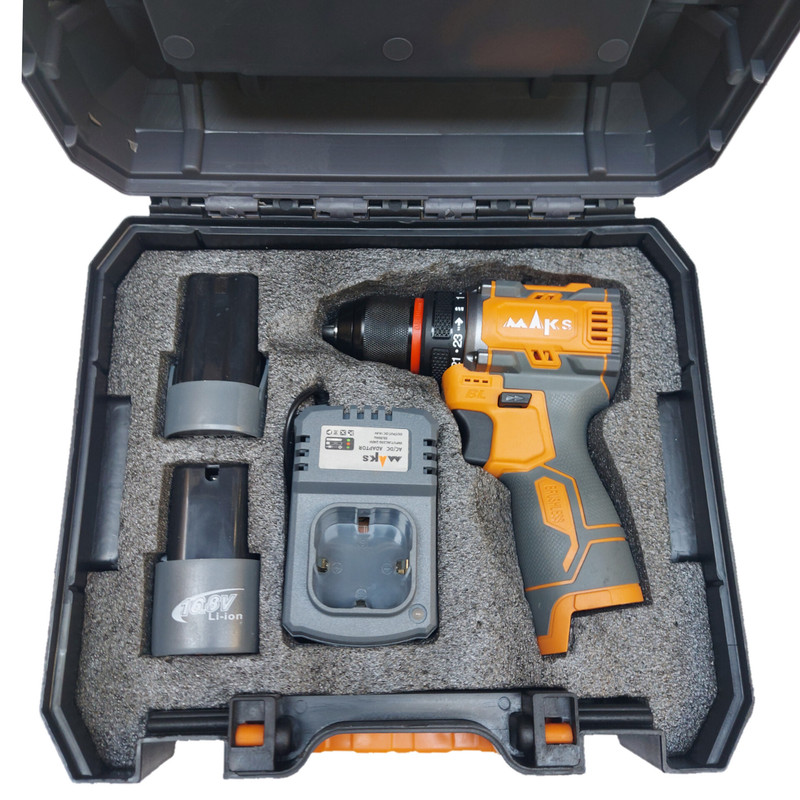 دریل شارژی براشلس مکس با دو عدد باتری 16/8 ولت می باشد.