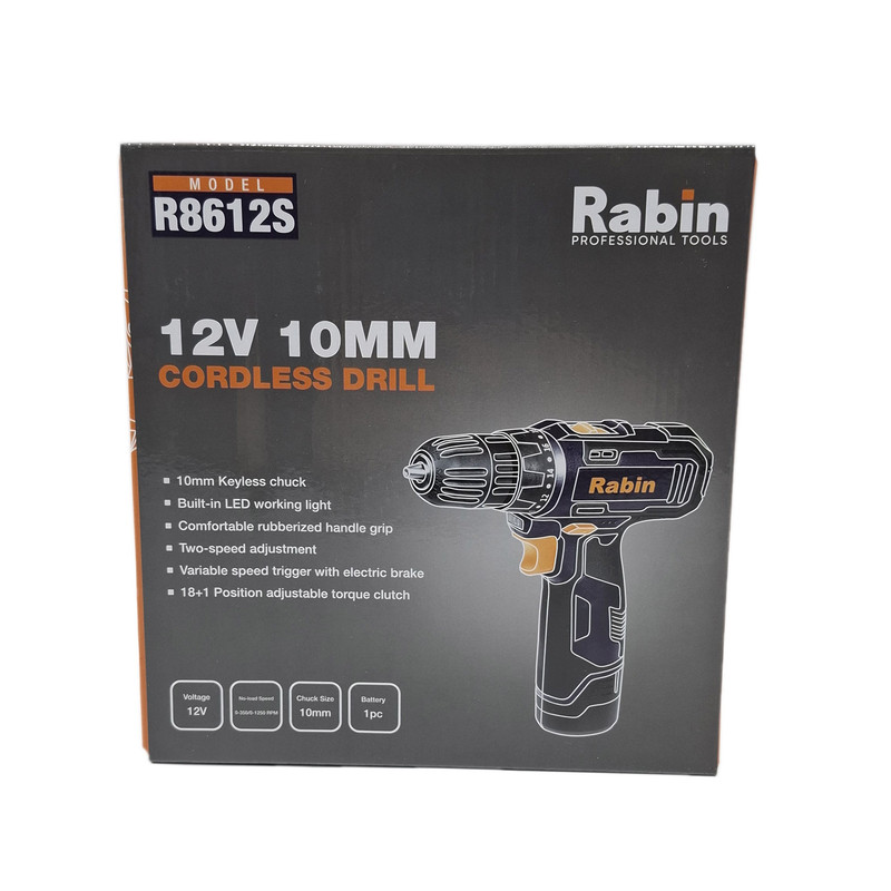 شرکت حرفه ای ابزار آلات برقی رابین ; با تولید دریل پیچ گوشتی شارژی صنعتی مدل R8612S قدرت خود را بر رخ رقیبان بزرگ کشید . این دستگاه جایگزین مناسبی برای پیچگوشتیهای معمولی است و موجب بالا رفتن سرعت کاربر در حین کار میشود و باید برای این منظور مجموعهای کامل از سریهای پیچگوشتی تهیه کنید. این محصول با توجه به سرعت چرخش بالایی که دارد، در حالت دریل نیز عملکرد خوبی خواهد داشت. سرعت این محصول قابلکنترل است و کاربر میتواند آن را در دو بازهی 0_350 / 0 _1250 RPM تنظیم کند. گشتاور این دریل پیچگوشتی نیز مانند سرعت آن قابلتنظیم است. میزان ترکمتر و هرزگرد این دستگاه قابل تنظیم است. این محصول دارای 1 باتری با طول عمر بالا بوده که ولتاژی 12 ولتی و ظرفیتی 1.5 آمپرساعتی دارند. وجود سهنظام اتومات 10 میلی متری بسیار با کیفیت از دیگر مزایای این دستگاه است که موجب افزایش سرعت تعویض مته و سری پیچگوشتی میشود. تمام ویژگی های مثبت و کیفیت این دستگاه باعث شده که این دستگاه در نوع خود بی رقیب باشد.