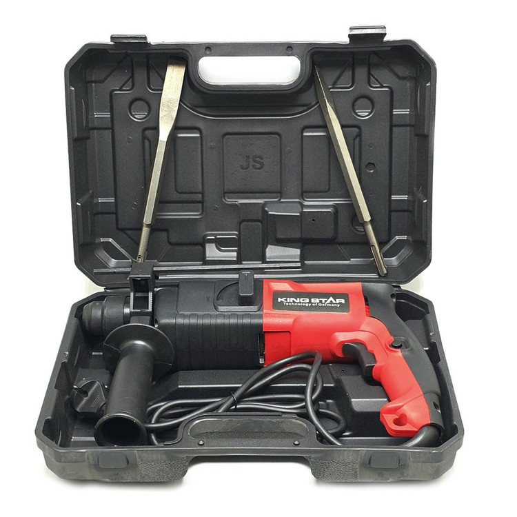 در حوزه ساخت و تولید ابزارآلات دریل، دریل ها برحسب موارد مصرف در بخش خانگی و صنعتی دریلها در ابعاد و انواع مختلف از جمله معمولی، چکشی و تخریب تولید میشوند. یکی از برندهای معروف در این زمینه، دریل بتن کن شرکت کینگ استار (KING STAR) می باشد. دریل بتنکن کینگ استار با طراحی بسیار زیبا و جدید خود جهت تخریب انواع مصالح ساختمانی به بازار عرضه شده است. با وجود دکمهای که روی بدنه تعبیه شده است، میتوانید دستگاه را به دریل معمولی و چکش نیز تبدیل کنید. در این مدل دریل بتن کن شما می توانید با قرار دادن دستگاه در حالت معمولی و چکش ، از سرعت گردش آزادی برابر تا 4100 دور در دقیقه بهرهمند شوید. در این حالت شما قادر هستید تا عملیات سوراخکاری را بر روی انواع سطوح چوبی، فلزی و بتنی بهراحتی انجام دهید. چنانچه دریل را در حالت تخریب قرار دهید، دستگاه قادر است با این نرخ ضربه بالا نیز میتوان انواع مصالح ساختمانی را تخریب کرد. موتور این بتن کن دارای توانی برابر با 1300 وات داشته که در مقایسه با محصولات مشابه در بازار از قدرت قابلقبولی برخوردار است.