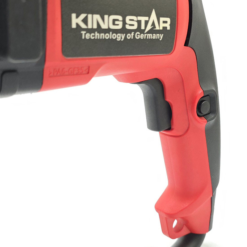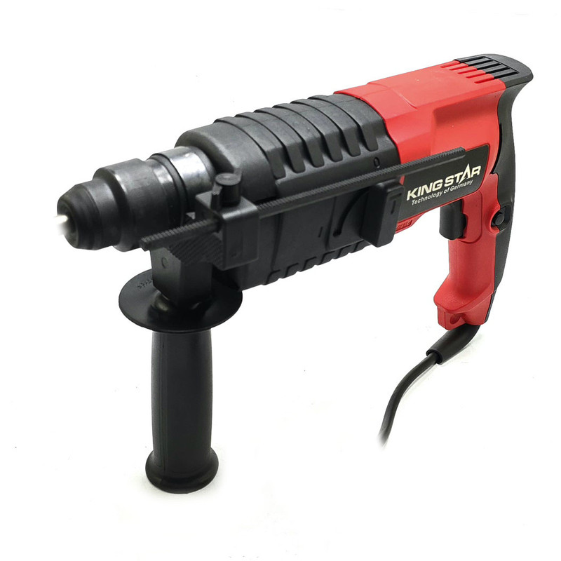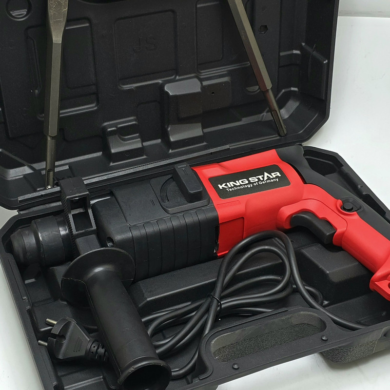 در حوزه ساخت و تولید ابزارآلات دریل، دریل ها برحسب موارد مصرف در بخش خانگی و صنعتی دریلها در ابعاد و انواع مختلف از جمله معمولی، چکشی و تخریب تولید میشوند. یکی از برندهای معروف در این زمینه، دریل بتن کن شرکت کینگ استار (KING STAR) می باشد. دریل بتنکن کینگ استار با طراحی بسیار زیبا و جدید خود جهت تخریب انواع مصالح ساختمانی به بازار عرضه شده است. با وجود دکمهای که روی بدنه تعبیه شده است، میتوانید دستگاه را به دریل معمولی و چکش نیز تبدیل کنید. در این مدل دریل بتن کن شما می توانید با قرار دادن دستگاه در حالت معمولی و چکش ، از سرعت گردش آزادی برابر تا 4100 دور در دقیقه بهرهمند شوید. در این حالت شما قادر هستید تا عملیات سوراخکاری را بر روی انواع سطوح چوبی، فلزی و بتنی بهراحتی انجام دهید. چنانچه دریل را در حالت تخریب قرار دهید، دستگاه قادر است با این نرخ ضربه بالا نیز میتوان انواع مصالح ساختمانی را تخریب کرد. موتور این بتن کن دارای توانی برابر با 1300 وات داشته که در مقایسه با محصولات مشابه در بازار از قدرت قابلقبولی برخوردار است.