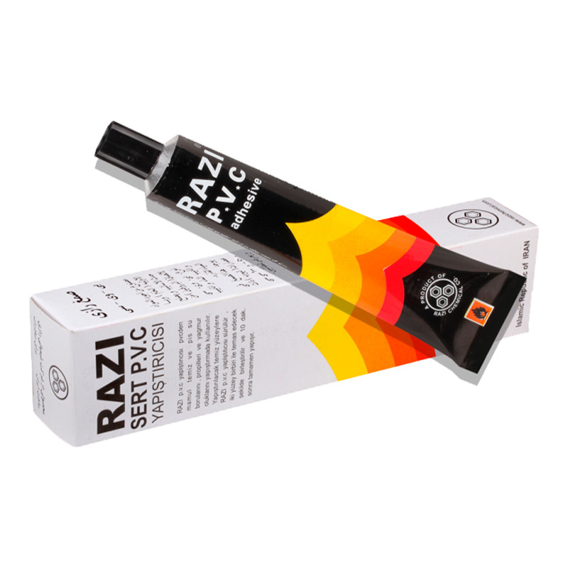جهت استفاده از چسب پی وی سی رازی ،در مرحله اول ،سطوح اتصال راکاملا تمیز نمایید و در گام بعدی چسب پی وی سی را به صورت لایه نازکی برروی آن پخش نمائید سعی شود که در انتهای لوله مقدار بیشتری چسب قرار گیرد. لوله و اتصال را بدون هیچگونه چرخشی تا رسیدن لبه لوله به انتها ی اتصال داخل یکدیگر نمائید و برای چند ثانیه، بدون حرکت نگهدارید تا گیرایش اولیه بدست آید.اتصال دو سطح پس از 5 دقیقه کاملا محکم می شود.