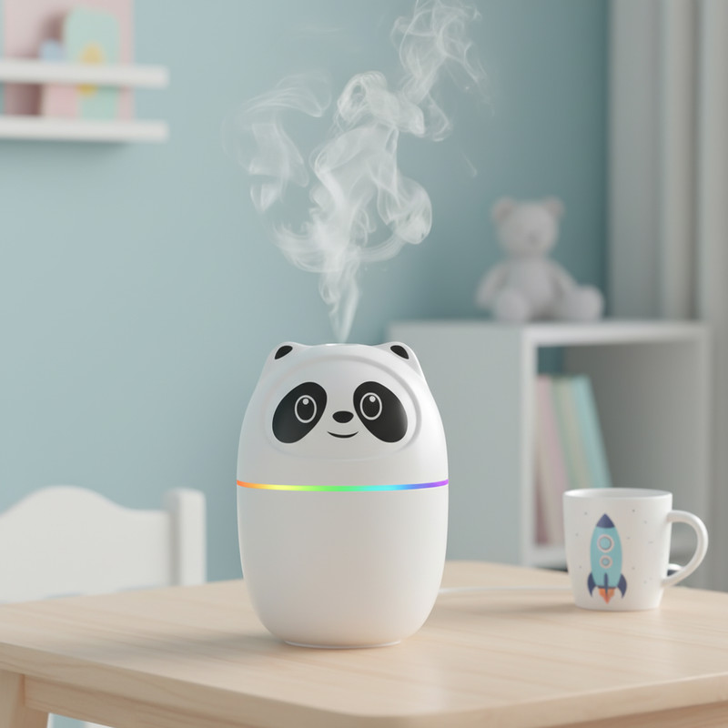 دستگاه بخور سرد طرح پاندا علاوه بر بخار سرد، چراغ خواب نیز ارائه میدهد. ابعاد آن ۱۰ × ۸ × ۸ سانتیمتر و حجم مخزن ۲۲۰ میلیلیتر است.