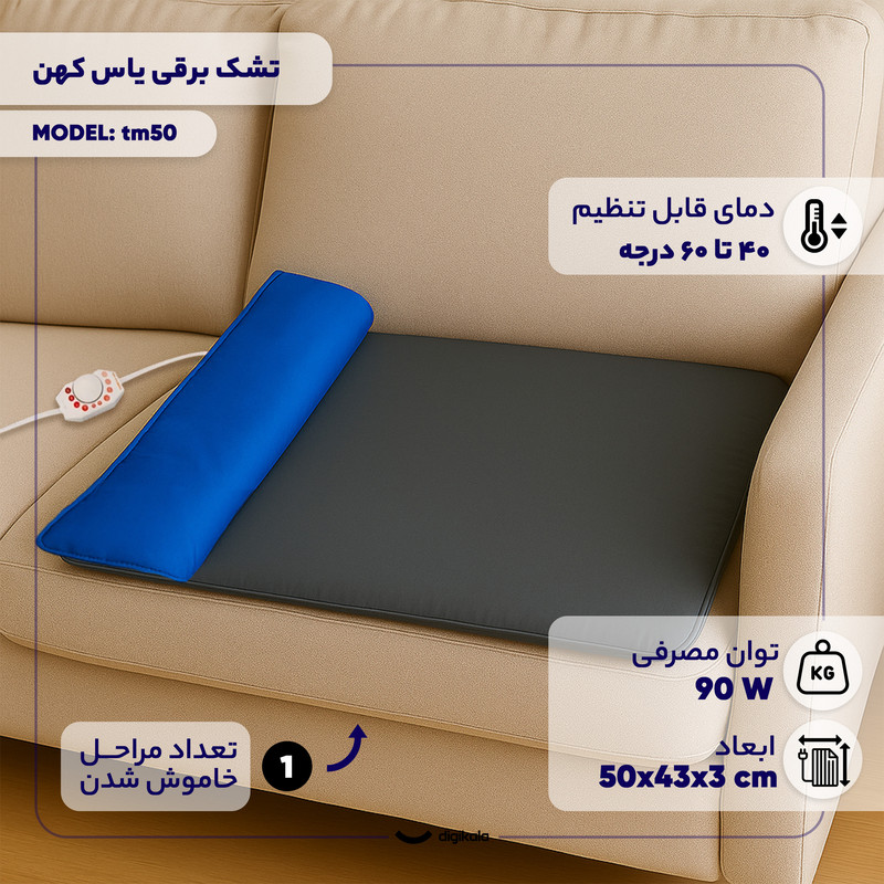 تشک برقی یاس کهن مدل tm50 سایز 50×43 سانتی‌متر