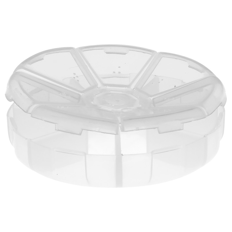 محفظه نگهداری قرص هفتگی که با داشتن هفت قسمت جداگانه برای نگهداری قرص در هر روز است. از جنس پلاستیک بوده با وزن حدود 20 گرم برای جابجایی آسان، که به راحتی قابل حمل می باشد. از جهت شفافیت بالای محصول قرص ها داخل محفظه قابل روئت است.