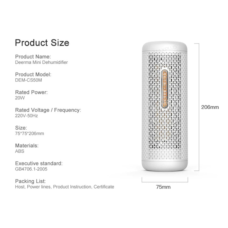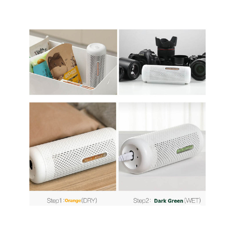اینکه همیشه همه به دنبال دستگاه های مرطوب کننده هوا میگردند اما زندگی در شهرهای مرطوب سبب میشود تا متوجه معایب رطوبت بالا نیز بشوید. به طور مثال وقتی طوبت هوا زیاد باشد خیلی از مواد غذایی به زودی فاسد میشوند، لباسهای خیس بسیار دیر خشک میشوند و حتی گاهی خانه بوی نم میگیرد. برای اینکه بتوانید با این مشکل مواجه شوید deerma محصولی به نام دستگاه رطوبت گیر درما Deerma CS50M Mini Dehumidifier را عرضه کرده است. این دستگاه میتواند رطوبت محیط را به حد استاندارد برساند تا نه از خشکی و از میزان رطوبت بالای هوا اذیت شوید.در واقع کار اصلی رطوبت زدایی را این گلوله های ژله ای سیلیکونی انجام میدهند. داخل دستگاه رطوبت گیر Deerma CS50M یک پک 600 گرمی گوی سیلیکا وجود دارد. این گویها در حالت عادی نارنجی رنگ بوده و آماده جذب رطوبت هوا میباشند. این گویها را میتوانید برای چند ماه استفاده کنید و حدودا بین 2 تا 3 هفته دوام میآورند. برای استفاده دوباره کافیست به آنها حرارت دهید تا رطوبتشان را از دست بدهند و دوباره قابل استفاده شوند.این گوی های ژله ای کاملا سالم بوده و از مواد غیر سمی برای بدن انسان تشکیل شدهاند. لذا میتوانید از این دستگاه در هر محیطی چه اتاق خواب و چه آشپزخانه و استخر استفاده کنید.بدنه دستگاه رطوبت زدا درما CS50M استوانه ای بوده و مشبک میباشد. جنس بدنه از پلاستیک ABS بوده و در حرارت بالا مقاوم است. ابعاد آن 206×75×75 میلی متر است و به راحتی در هر جایی مانند کابینتهایی که میخواهید مواد غذایی داخل آن خشک بمانند قابل استفاده خواهد بود. در قسمت روبهرویی دستگاه یک مخزن کوچک را میبینیم که ژلهای سیلیکا درون آن قرار دارند. این گوی ها در حالت عادی به رنگ نارنجی بوده و از این جا قابل مشاهده هستند. زمانی که دستگاه برای مدتی کار کند و رطوبت هوا را جذب کند، این مواد تغییر رنگ داده و سبز میشوند. سبز شدن این ماده به این معناست که رطوبت زدا کاملا اشباع شده و باید برای 12-15 ساعت گرم شود تا دوباره قابل استفاده باشد.برای اینکه بتوانید دوباره از گوی های ژله ای سیلیکا استفاده کنید باید برای 12 تا 15 ساعت به آنها حرارت دهید. این حرارت از طریق هیتر PTC درون دستگاه که از سه قطعه سرامیک تشکیل شده تامین میشود. کافیست دستگاه را به برق متصل نمایید.