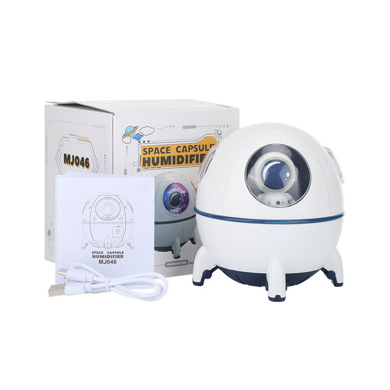 دستگاه بخور و رطوبت ساز را می توان یکی از مهمترین و ضروری ترین لوازم مورد نیاز در خانه و حتی محل کار دانست ، دیگر استفاده از بخور و فواید آن برای پوست ، زیبایی و درمان انواع بیماری ها بر کسی پوشیده نیست ، از این دستگاه می توانید برای تهویه مطبوع هوای فضای منزل ، اتاق خواب کودک و دفتر کارتان استفاده نمایید. دستگاه بخور و رطوبت ساز سرد فضانورد کد MJ046 یک دستگاه بخور سرد زیبا با طراحی جذاب و اندازه ای مناسب با قابلیت حمل آسان است. این بخور با طراحی جذاب فضانورد و سفینه فضایی دارای چراغ خواب برای استفاده در اتاق خواب کودکتان است. مخزن این دستگاه بخور دارای حجم 220 میلی لیتر آب بوده و از طریق برق مستقیم و کابل Type-C (تایپ سی) داخل جعبه تغذیه می شود. جنس این رطوبت ساز از پلاستیک مقاوم ABS در ترکیب با ژل سیلیکا است.