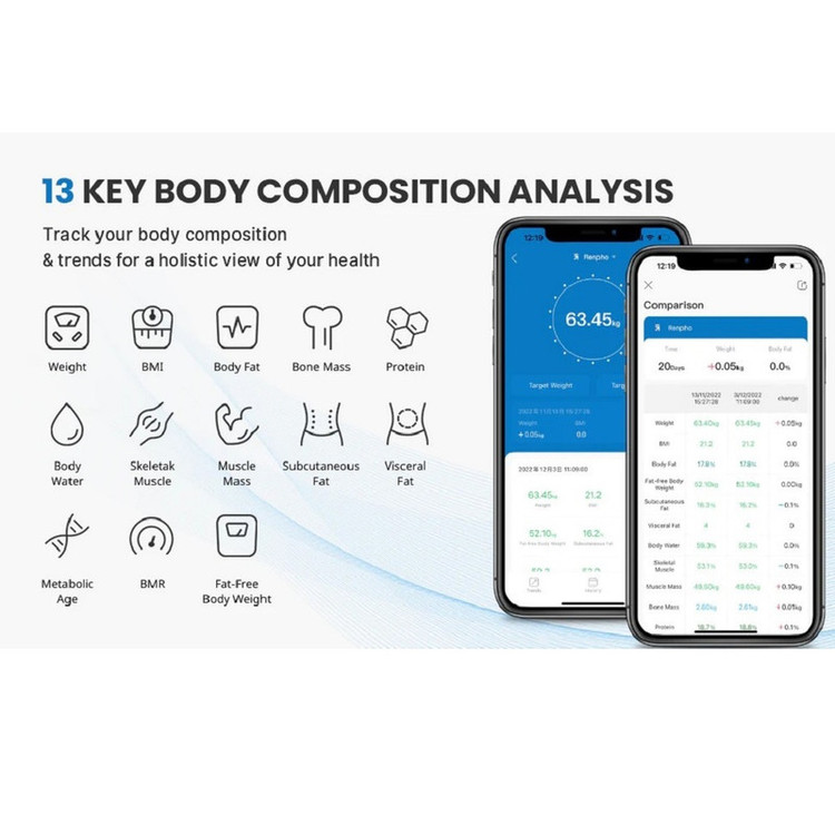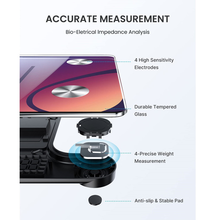 سنجش میزان آب بدن , سنجش درصد چربی بدن , سنجش توده عضلانی , سنجش چربی احشایی , محاسبه BMI (شاخص توده بدنی) , سنجش متابولیسم بدن , تخمین سن متابولیک , سنجش چربی زیرپوستی