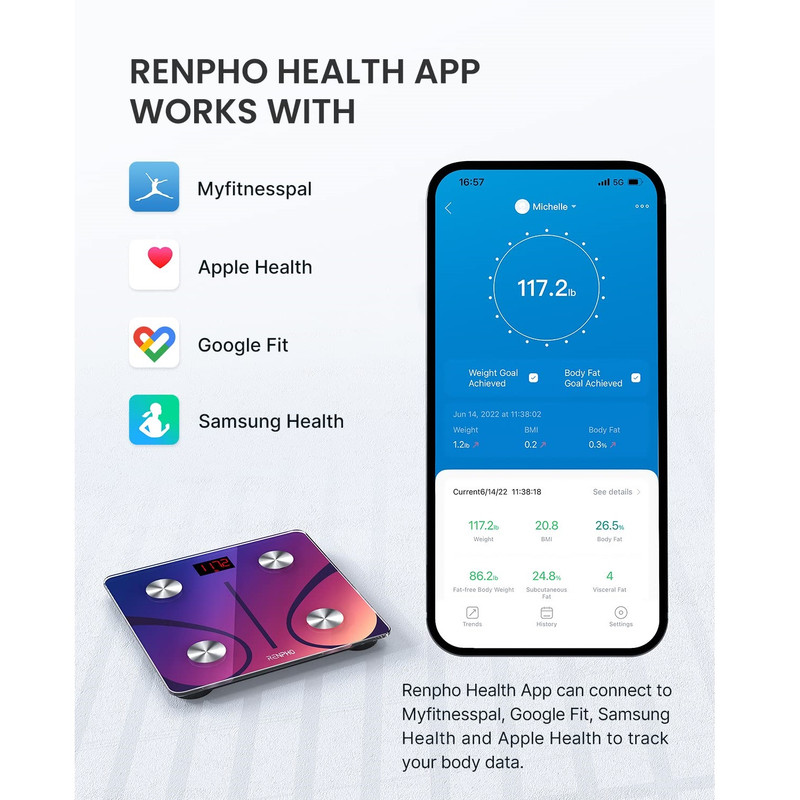 سنجش میزان آب بدن , سنجش درصد چربی بدن , سنجش توده عضلانی , سنجش چربی احشایی , محاسبه BMI (شاخص توده بدنی) , سنجش متابولیسم بدن , تخمین سن متابولیک , سنجش چربی زیرپوستی