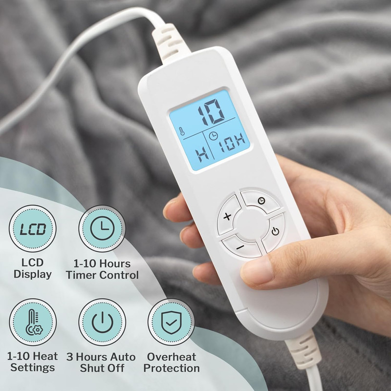 10 تنظیم گرما و تایمر 10 ساعت - پتوی برقی کوریول 10 سطح گرمایش را فراهم می کند تا کاربران بتوانند دمای مورد نظر را مطابق با ترجیحات خود تنظیم کنند. و پتو گرم شده کوریول مجهز به تایمر قابل برنامه ریزی 1 تا 10 ساعت و عملکرد خاموش شدن خودکار 3 ساعته است. و صرفه جویی در انرژی. ایده آل برای زمانی که به خواب می روید یا اگر فراموش کرده اید پرتاب گرم شده خود را از برق بکشید.